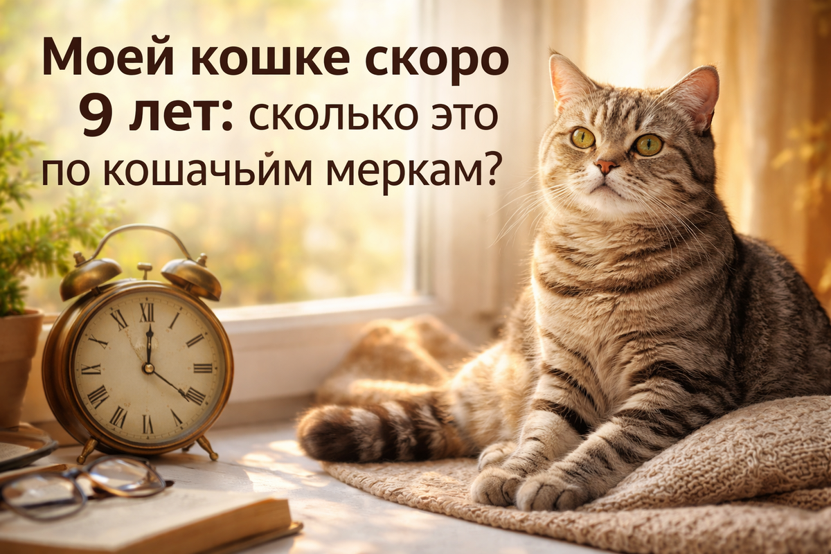 Она родилась 10 ноября 2017 года. Ей сейчас почти 9 лет. И я всегда хотела понимать как у кошек идёт время. Сколько ей кошачьих лет? Учёные и ветеринары давно заметили одну закономерность. Первый год жизни кошки по развитию примерно равен подростковому возрасту человека. Это примерно 15 человеческих лет. Второй год добавляет ещё около 9 лет. То есть двухлетняя кошка - это примерно 24-летний человек. А дальше возраст идёт медленнее. Каждый следующий год жизни кошки добавляет примерно 4 человеческих года. Если посчитать по этой схеме, получается любопытная картина. 9 лет кошке ≈ 52 человеческих года. То есть моя Хиллари по человеческим меркам