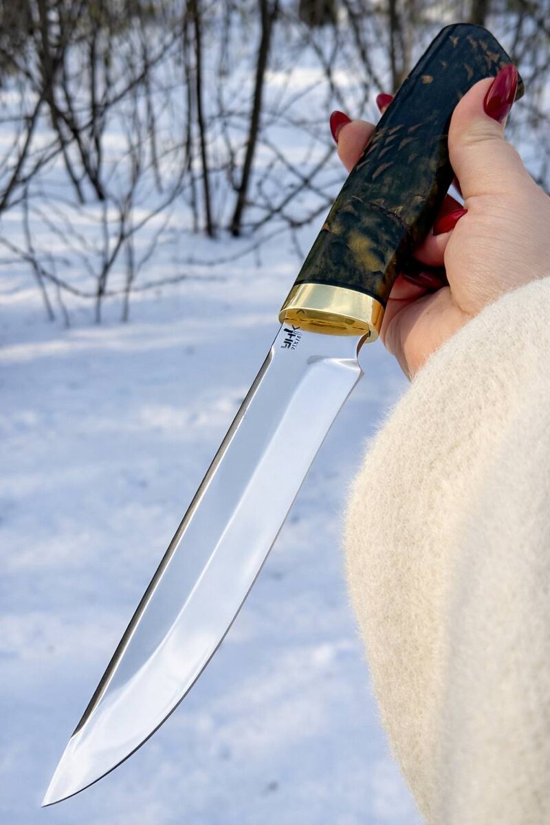В наличии НОЖ Стрелец, сталь 95х18 твердость клинка 60-61 HRC, рукоять шишки в акриле, гарда латунь.
