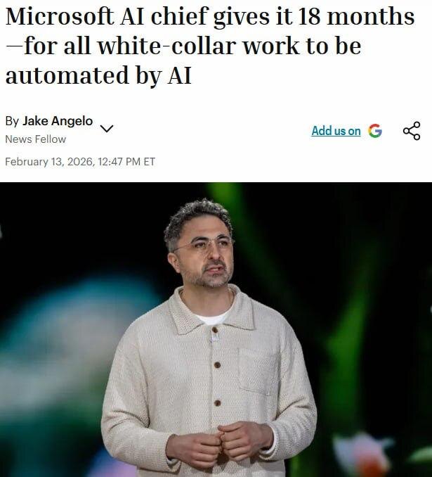 Большинство офисных сотрудников могут лишиться работы в ближайшие 12–18 месяцев, считает Мустафа Сулейман, руководитель ИИ-направления Microsoft. По его прогнозу, под риском окажутся бухгалтеры, юристы, маркетологи и даже менеджеры проектов. Причина — возможность создавать автономных ИИ-агентов, способных выполнять типовые офисные задачи на уровне человека. На запуск таких систем потребуется около года, ещё несколько месяцев уйдёт на настройку под конкретный бизнес. После этого компании смогут масштабировать процессы без расширения штата. А кому они будут продавать свои услуги то?