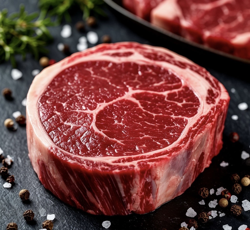 ⦁ Мраморность. Это внутримышечный жир. При нагревании он плавится, пропитывая волокна изнутри. Именно он дает тот самый «маслянистый» вкус. Чем больше белых прожилок, тем выше категория (Prime, Top Choice).