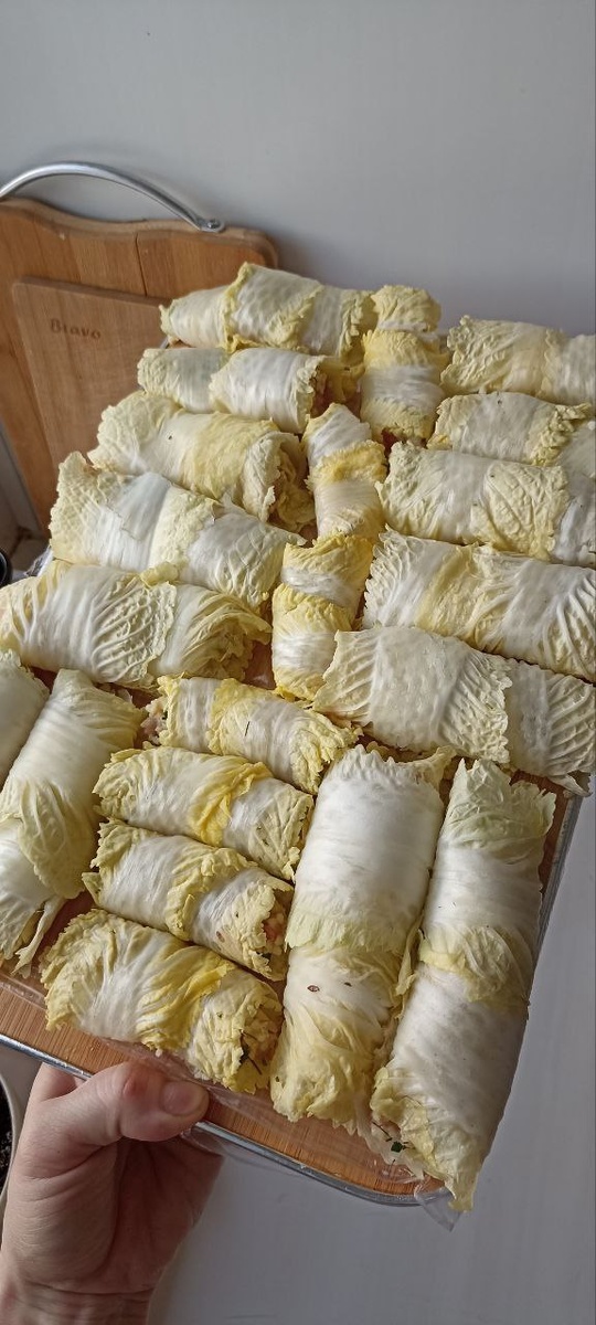 👌 Если можешь рис не кушать - не кушай! 👌🤭 Фарш: -рубленная грудка индейки -яйцо -пшено отварное (можно и рис) -специи: соль, перец, куркума, зелень сушеная Качан китайской капусты на три минуты в пакете в микроволновку (если пользуетесь ей, я практически нет) или на пару минут в кипящую воду. Некоторые срезают выпирающую часть ножки ножом, чтобы она стала тонкой, я же отбиваю молотком👌 Можно просто обжарить. Я иногда заливаю соусом и тушу. Соус: в блендере лук, чеснок, помидор, можно перец болгарский, воду, специи, сметану/сливки потом по желанию, если едите. Процесс сборки на видео, быстро и просто 🔥