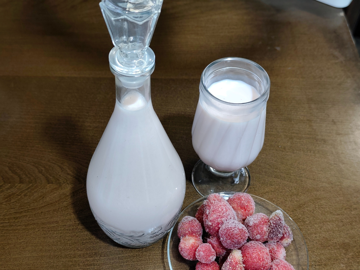 Я МНОГО РАЗНЫХ НАПИТКОВ ГОТОВЛЮ САМА. Такие как : десертное вино, настойки, ликер, коньяк и слабоалкогольные напитки. Сегодня я поделюсь с вами слабоалкогольным молочно клубничным напитком.