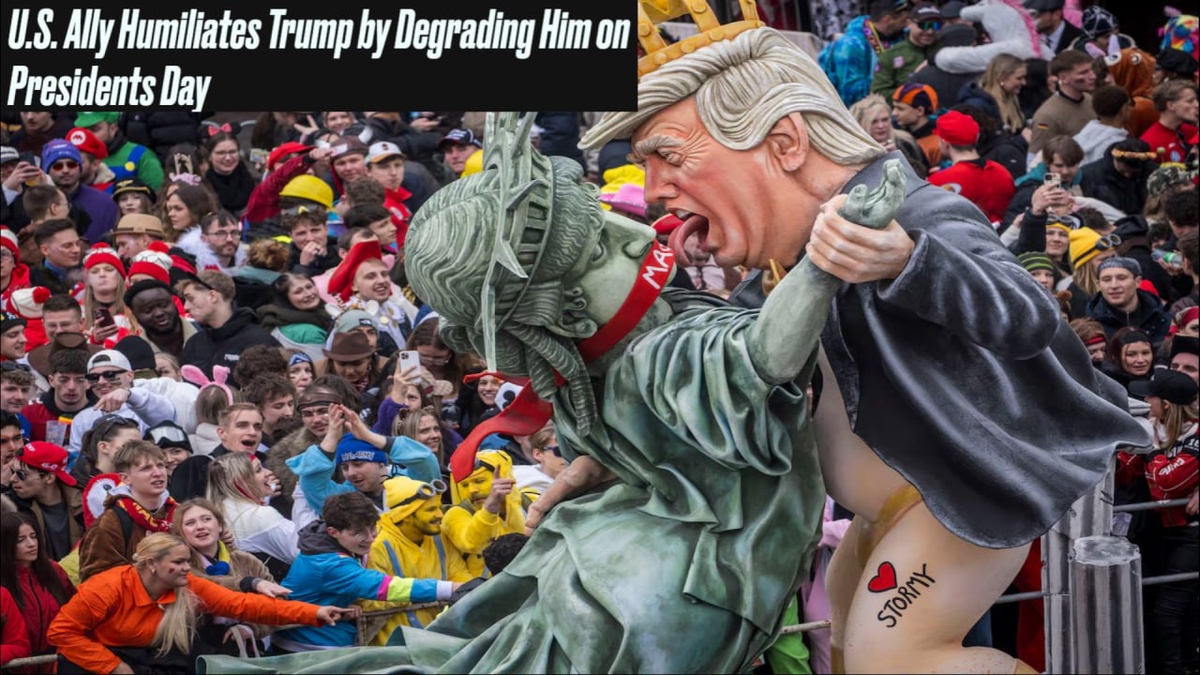 US 'ally HUMILIATES Trump' in OBSCENE GIANT nude float on Presidents Day — Germany footage/quote from The Daily Beast
