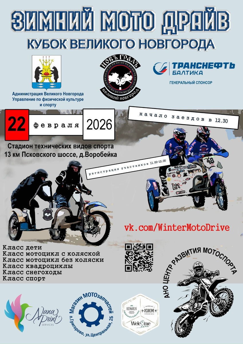 Зимний Мото Драйв (Великий Новгород) Мотофесты недели На этой неделе: 22.02.2026 Координаты: 58.444687, 31.120785 Место проведения: Великий Новгород #ВеликийНовгород #Мотофесты @motofesty