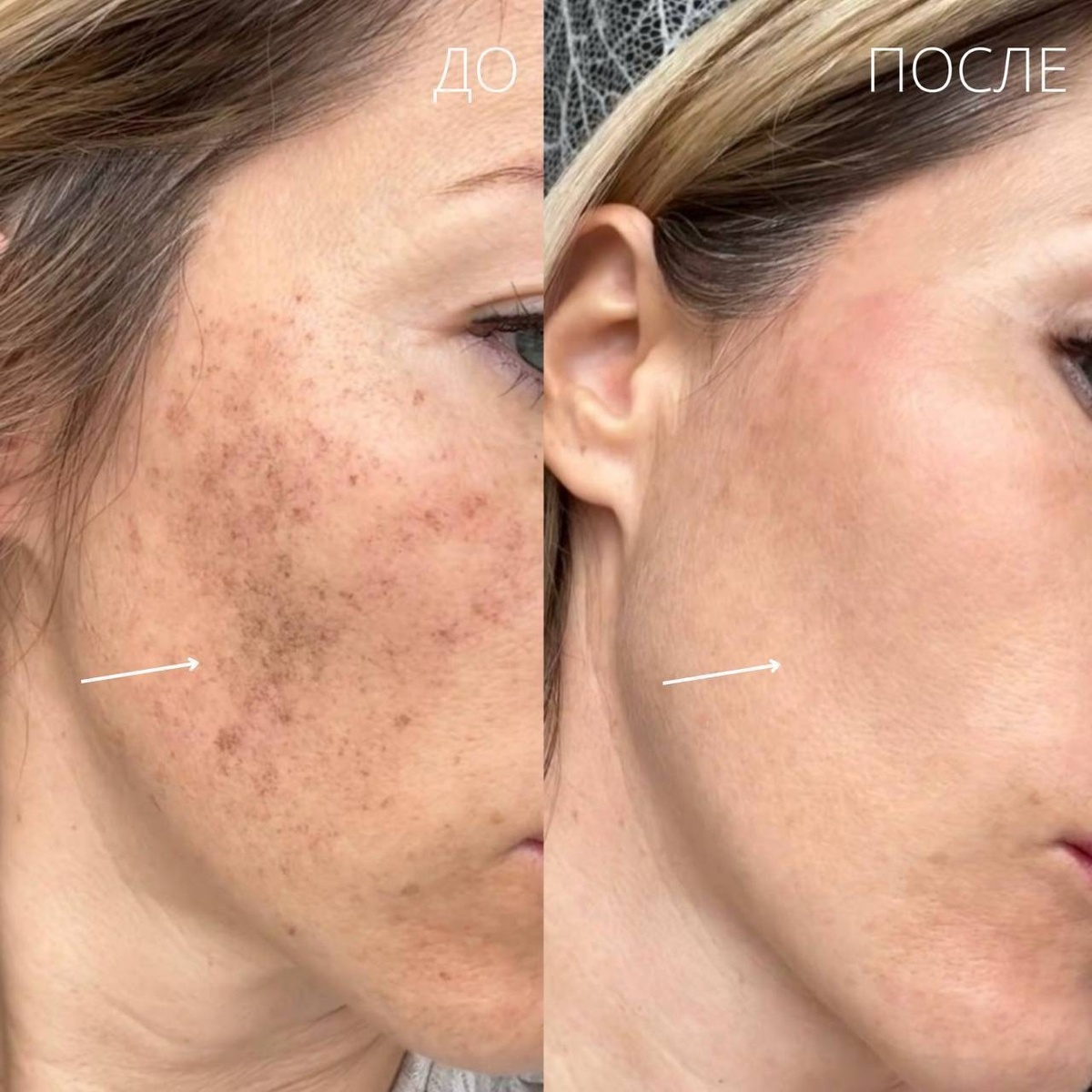 пигментация, которая не перекрывается даже плотным тональным кремом, неровный тон, уставший вид. Справа – результат после фототерапии: кожа, которая светится изнутри, без грамма косметики Мы часто слышим от пациентов такой запрос: