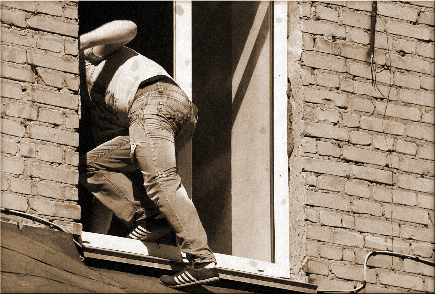 Будучи студентом, я часто видел такую картину, как парни и, даже, девушки заходят и выходят из общаги через окно. Это прикольные и незабываемые картины, причём это делалось не только на первый этаж. И именно это действо навеяло следующее стихотворение...