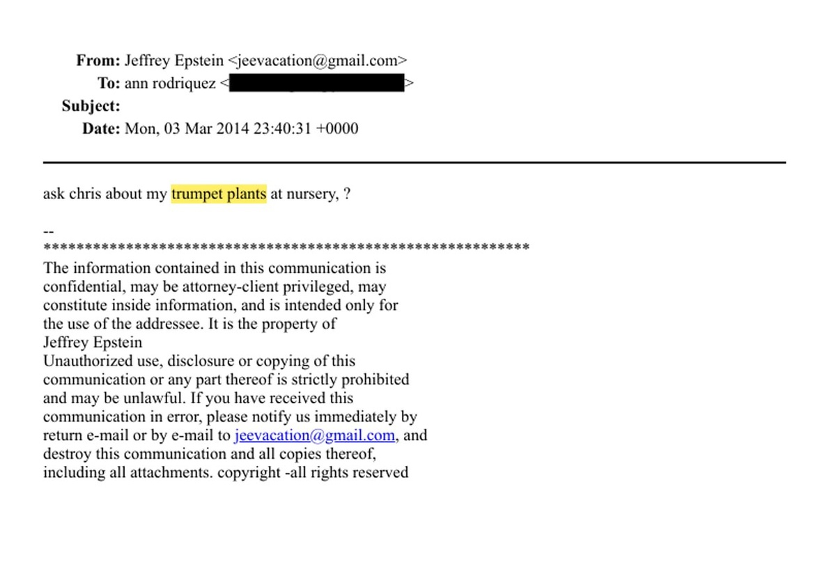Jeffrey Epstein asks about ‘zombie drug’ plants at nursery