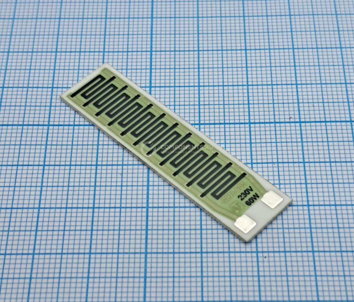 GBR-605-230-60-2 от TELPOD — это нагревательный резистор толстоплёночного типа (thick film). Он предназначен для использования в качестве нагревательного элемента в различных устройствах. 1. Сопротивление: 880 Ом. 2. Мощность: 60 Вт. 3. Максимальное рабочее напряжение: 230 В постоянного тока. 4. Материал корпуса: окись алюминия. 5. Монтаж: приклеивание. 6. Подключение: площадки под пайку. 7. Максимальная температура поверхности: 350 °C. 8. Размеры: длина — 50,8 мм, ширина — 12,7 мм, высота — 1 мм. 9. Вес: 2,439 г. Особенности: - изолированное исполнение; - защитное покрытие. 1. Промышленная автоматика и датчики: 2. Телекоммуникационное и сетевое оборудование: 3. Медицинское и лабораторное оборудование: 4. Бытовая и коммерческая техника: 5. Транспорт и спецтехника: Оформить заказ на Резистор можно на официальном сайте: https://components.ru/news_stock/rezistor_nagrevatelnyiy_GBR-605-230-60-2_TELPOD/