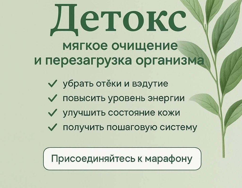 ! 🚀Последний групповой курс данной программы!! ❗️Интенсив «Умный детокс» – не просто модное слово, а ваша путеводная звезда легкости, энергии и восстановления после праздничного марафона. Что вас ждёт? ✔️ Мягкая очистка организма без жёстких голодовок. ✔️Восстановление ЖКТ после салатных миксов и килограммов сладостей. ✔️ Реальная энергия вместо утренней борьбы с собой. ✔️ План питания – доступно, вкусно, без войны. Какой результат? 📏 Минус лишние сантиметры. ⚡️ Энергия, как будто вы спали неделю! 👗 Чувство легкости, которое заставит вас вылезти из пижамы и захотеть чего-то большего! Продажи открыты ПО 100% брони мест (минимальная группа от 10 человек) Для кого этот интенсив? ⏺️Если ваш организм говорит: «Ну пожалуйста, разгрузи меня! ⏺️Если хочется восстановиться и снова почувствовать себя энергичной ⏺️Если просто нужно убрать последствия праздничного "перебора". 🎁 Начинаем 22 ФЕВРАЛЯ чтобы к весне вы почувствовали себя обновлённой ! ❗️Первый день подготовительный! Стоимость