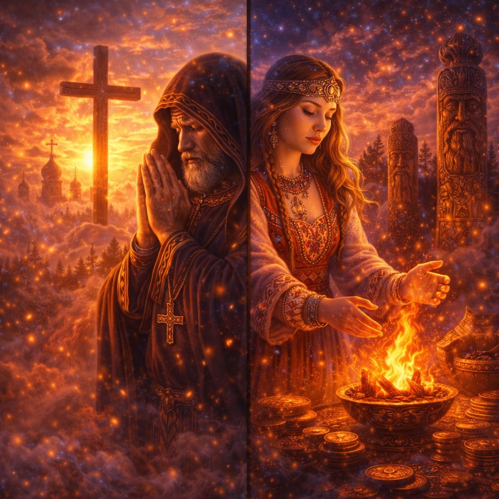 Что ближе славянину — молитва или заговор? Просить или действовать? Склонять голову или говорить с силой мира на равных? Ответ на этот вопрос лежит глубже религии. Он касается самой природы человека, выросшего на земле, где слово всегда было инструментом, а не только просьбой.
