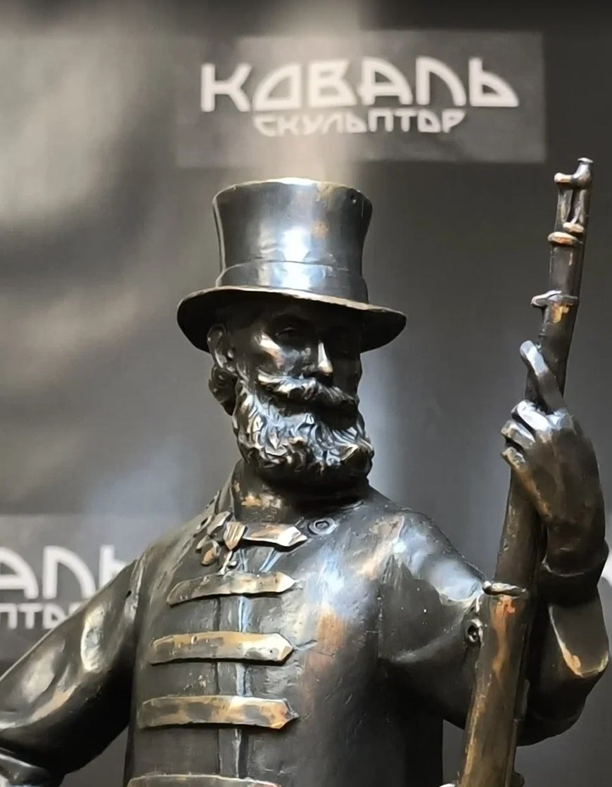 КАФТАНЩИК бронза высота 40 см. В петровские времена Кафтанщиками называли оружейников высокой квалификации, которых награждали орденом, зеленым кафтаном и цилиндром. Есть версия, что эти зеленые кафтаны послужили появлению песни "по улицам ходила большая крокодила". Ну а сегодня концерн "Калашников" награждает своих лучших мастеров бронзовой статуэткой Кафтанщик, работы скульптора Коваль.
