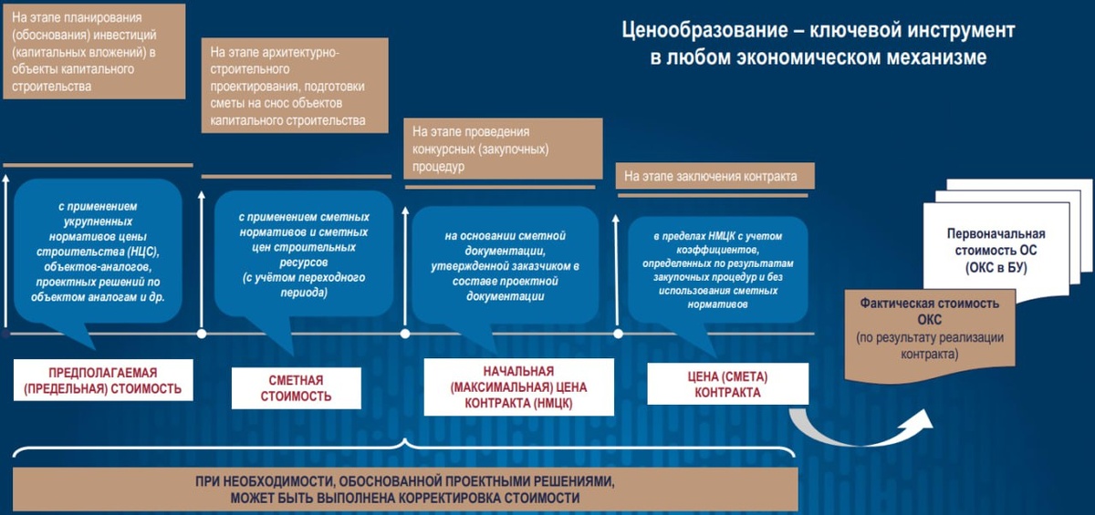 1️⃣Планирование (обоснование) инвестиций (капитальных вложений) в объекты капитального строительства (ОКС) 🔘С применением укрупненных нормативов цены строительства (НЦС) и (или) по данным объектов-аналогов в случае отсутствия НЦС ⚡️Предполагаемая (предельная) стоимость ➡️Подробнее про НЦС 2️⃣Архитектурно-строительное проектирование, подготовка сметы на снос ОКС 🔘С применением сметных нормативов и сметных цен строительных ресурсов ⚡️Сметная стоимость ➡️Подробнее про Сметную стоимость 3️⃣Проведение конкурсных (закупочных) процедур 🔘На основании утвержденной заказчиком в составе ПД сметной документации ⚡️Начальная (максимальная) цена контракта (НМЦК) ➡️Подробнее про НМЦК 4️⃣Заключение контракта 🔘В пределах НМЦК без использования сметных нормативов с учетом коэффициентов, определенных по результатам закупочных процедур ⚡️Цена (смета) контракта ➡️Подробнее про Смету контракта #ЧаВо #НЦС #НМЦК #Смета_контракта