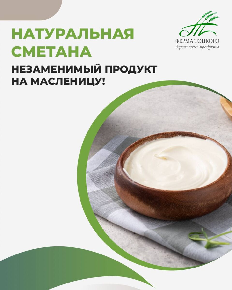 А сметана - их незаменимый спутник. 🥞 Нежная, слегка кисловатая сметана создаёт восхитительный контраст с тёплыми, сладкими блинами. Сметана от Фермы Тоцкого: ➡️ изготавливается исключительно из свежих деревенских сливок из молока коров красной датской породы с нашей фермы ➡️ не содержит искусственных красителей и консервантов ➡️ имеет натуральный молочный вкус ➡️ на выбор 20% и 40% жирности Адреса магазинов: ✔️ ТЦ "Космос-Сити", пр. Строителей, 45а ✔️ ЖК "Фаворит" ул. Мира, 44а ✔️Магазин «Гидростроевский», ул. Экспериментальная, 7 ✔️ ТЦ "Семейный", ул. Антонова, 18В