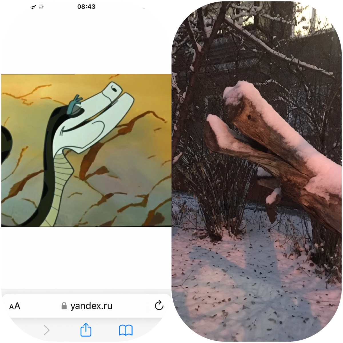Лично мне так кажется, что этот ствол дерева похож на Каа из «Маугли».
