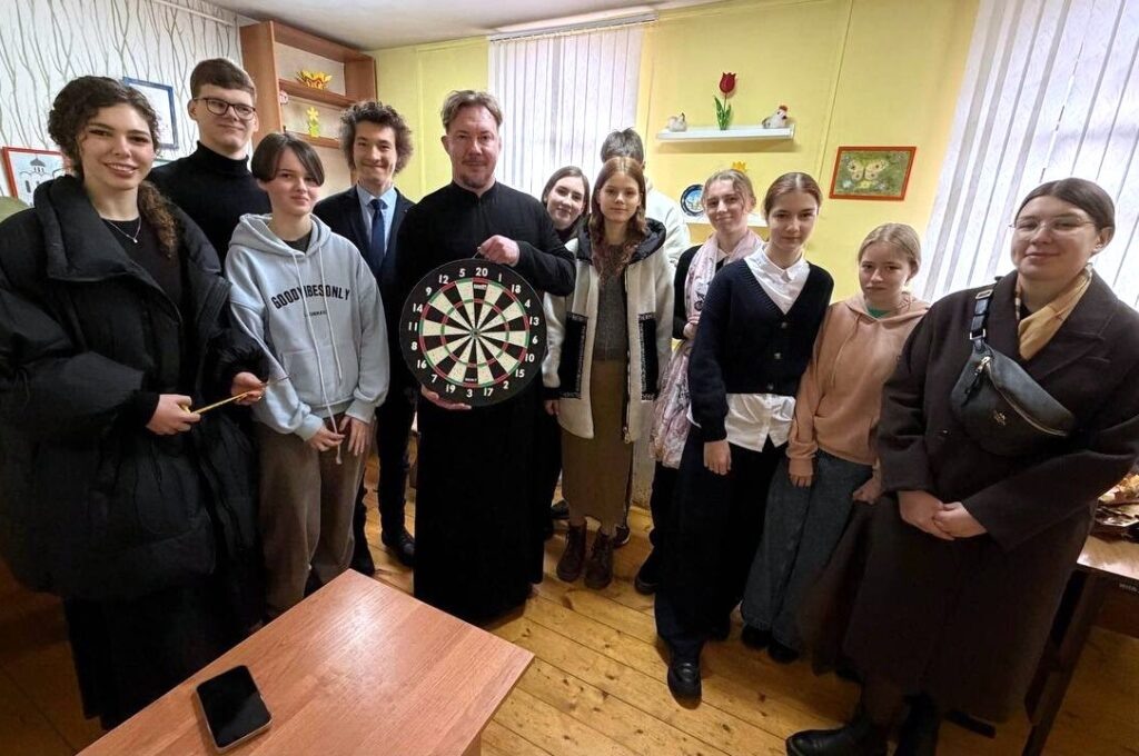 15 февраля 2026 года в Георгиевском храме города Долгопрудный состоялась очередная встреча молодёжного клуба «Звонница». Настоятель прихода протоиерей Александр Суворкин поздравил ребят и прочел обращение Святейшего Патриарха Московского и всея Руси Кирилла ко Дню православной молодёжи. В преддверии дня памяти святителя Николая Японского был организован открытый урок по игре в дартс. Руководитель молодёжного клуба диакон Евгений Нектаров рассказал основы игры и правила соревнований. Все участники встречи имели возможность освоить технику броска с профессиональным оборудованием, а также научиться основам тактики игры. Встреча завершилась дружеским чаепитием.