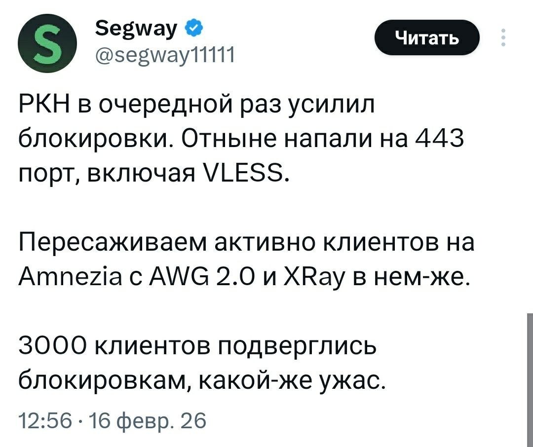 одним из самых надёжных способов обхода. И если его зачистка уже была раньше, то сейчас атака идёт с НОВОЙ СИЛОЙ: 🔴 ТСПУ (технические средства противодействия угрозам) научились видеть «отпечатки» этого трафика и начали его рубить. 🔴 Под раздачу попали даже продвинутые связки, которые раньше успешно маскировались под обычные сайты. 🔴 Жалобы идут СО ВСЕЙ СТРАНЫ: от Москвы до Владивостока — у кого-то коннект обрывается через минуту, у кого-то не устанавливается вовсе. Не самое доброе утро. CtrlAltDelights- подписаться
