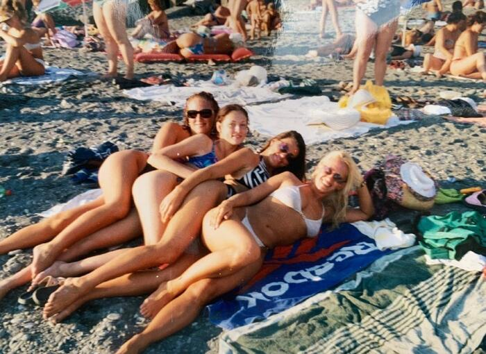На этой фотографии запечатлен момент непринужденного отдыха на омском пляже, погружая нас в атмосферу простых летних радостей 90-х годов. Две дамы сидят на песке, возможно, ведут беседу или просто наслаждаются солнечной погодой. Их купальники и прически отражают моду того десятилетия, которая сочетала практичность с яркими элементами. Вокруг, вероятно, много других отдыхающих, и атмосфера наполнена летним гулом и шумом воды. Снимок, сделанный на обычную пленочную камеру, излучает тепло и ностальгию по ушедшему времени, когда отдых был менее притязательным.
