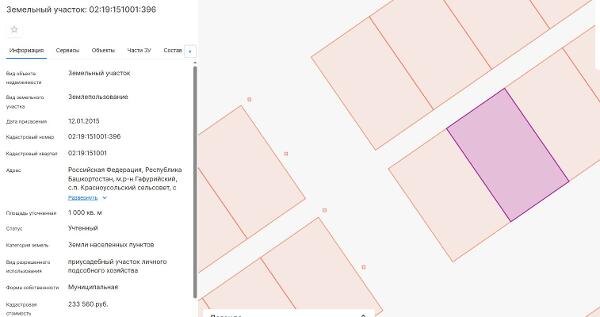 Название: земельный участок из категории земель населенных пунктов, кадастровый номер 02:19:151001:396 площадью 1000+/-11 кв.м., вид