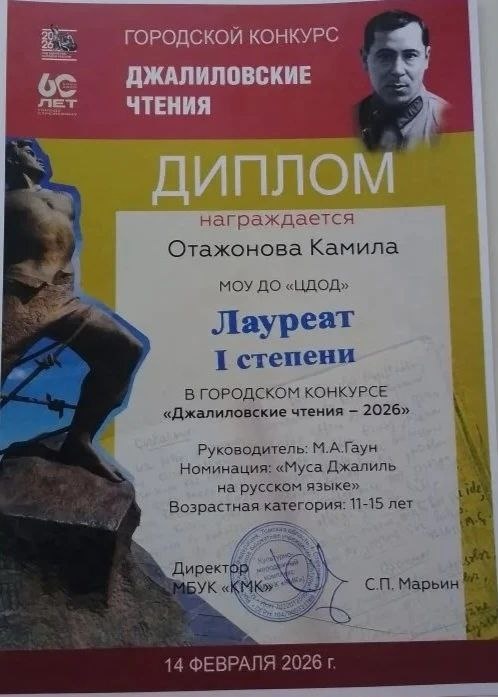 По итогам городского конкурса "Джалиловские чтения - 2026" юные чтецы Театральной мастерской "Подмостки " заняли 3 призовых места!