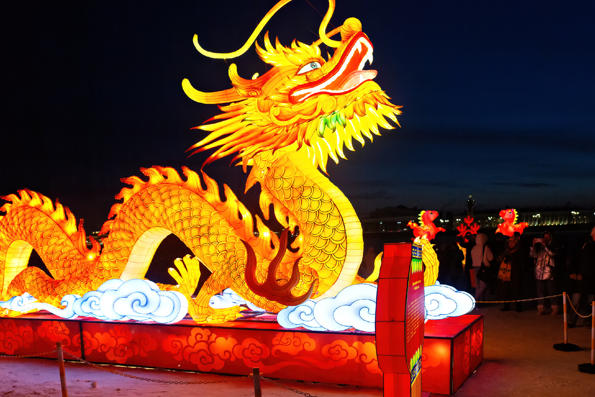 Фонари привезли мастера из города Цзыгун, который находится в провинции Сычуань. Этот город уже больше тысячи лет считается мировой столицей фонарей - там это ремесло передают из поколения в поколение. Искусство создания цзыгунских фонарей официально признано объектом нематериального культурного наследия Китая. Некоторые фигуры, которые привезли в Петербург, достигают четырех метров в высоту, а один из драконов растянулся на двадцать метров в длину.