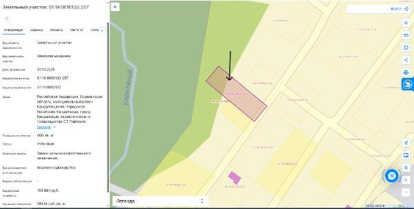 Название: Земельный участок с кадастровым номером 51:19:0010132:257, площадью 600 кв.м., категория земель – земли сельскохозяйственного