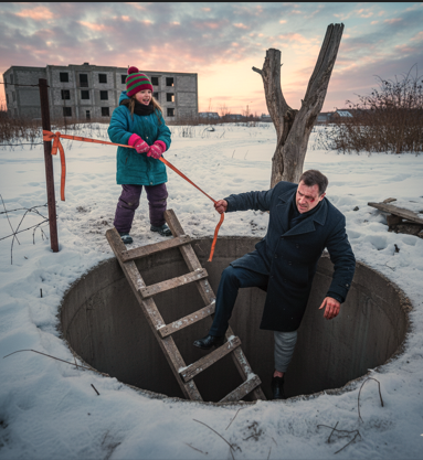 Они подтащили мужчину к черному провалу бетонного колодца.