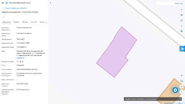 Название: Продажа земельного участка из земель населенных пунктов с кадастровым номером 71:23:030115:888, площадь 771 кв