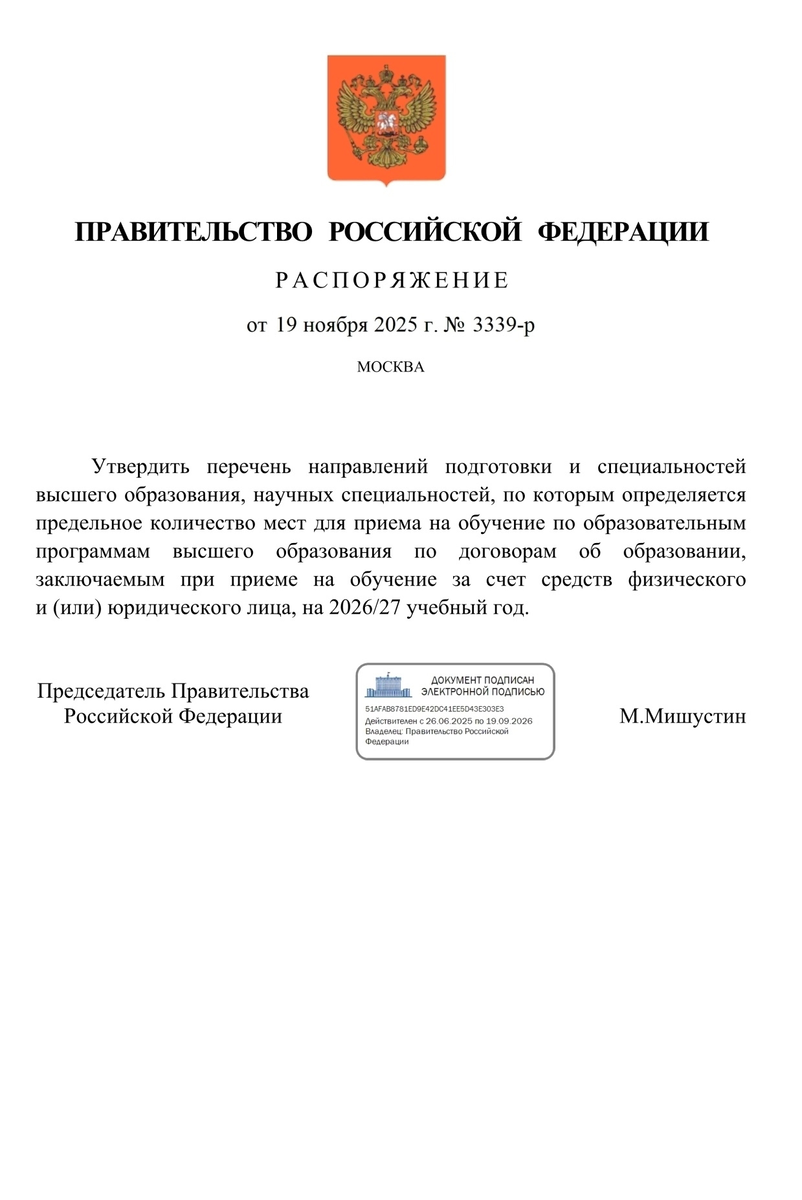 Правительство утвердило перечень направлений подготовки и специальностей, по которым определяется предельное количество платных мест в ВУЗах.