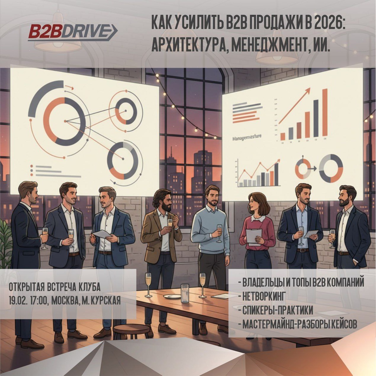 !!! В начале года просели продажи? Ключевые клиенты «остывают»? Закрывать новых всё сложнее и дольше? Самое время подумать над тем, как усилить продажи системно. Приходите за новыми идеями, энергией и полезными контактами на открытую встречу бизнес-клуба B2B DRIVE. Тема встречи: «Как усилить B2B продажи в 2026: Архитектура, менеджмент, ИИ». Вас ждут 3 выступления от практиков с многолетним опытом работы в сложных B2B-продажах. Обсудим разделение ролей, активацию команды и усиление продаж при помощи ИИ. После выступлений — мастермайнд-разборы запросов участников и неформальный нетворкинг. Москва, 19.02, начало в 17:00. Участие бесплатное, заявки модерируются, подробности и регистрация здесь: https://b2bdrive.timepad.ru/event/3818050/