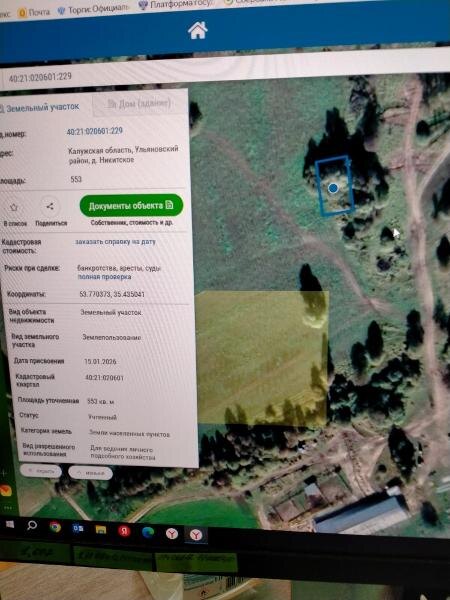 кадастровым номером 40:21:020601:229, площадью 553кв.м, адрес (описание местоположения): Местоположение установлено относительно ориентира, расположенного в границах участка. Почтовый адрес ориентира: Калужская область, Ульяновский район, д.Никитское. Канал: Госземля Калужская область Область: обл Калужская Район: м.р-н Ульяновский Населенный пункт: с.п. село Волосово-Дудино Локация: Смотреть на карте ВРИ: Земельные участки общего назначения Кадастровый номер: 40:21:020601:229 Кадастровая стоимость: - Вид сделки: Продажа Площадь: 553 м² Начальная цена: - руб. Дата завершения: 17.03.2026 Подробнее: ГИС ТОРГИ #госземля #земляотгосударства #земля #земельныйучасток #земельныеторги #торги #аукцион #продажаземли #продажа #калужскаяобласть