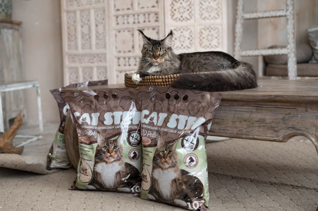 Еще один оптимальный наполнитель для габаритного питомца — древесные пеллеты CAT STEP Wood Pellets. Они также отличаются крупными размерами, благодаря чему не покидают лоток, пристав к кошачьим лапам и меху.