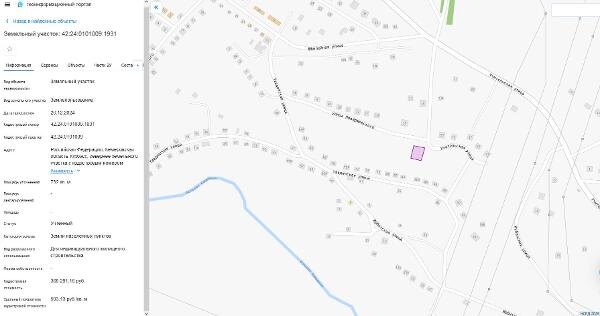 Название: Земельный участок, пл.732 кв.м, кадастровый №42:24:0101009:1931, разрешенное использование: для индивидуального жилищного