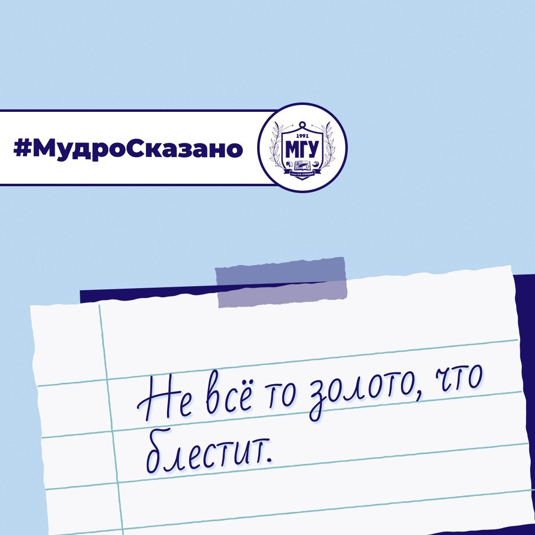✅ «Не всё то золото, что блестит». ➡️ Внешний успех и громкие слова не всегда говорят о настоящей ценности. Истинная мудрость — уметь видеть суть, а не поддаваться первому впечатлению. 💙 А в чём для вас заключается настоящая ценность человека? 👻 MAX|💙ВК|📝Дзен|🤩Сайт #МГУимениКуинджи #словозаслово