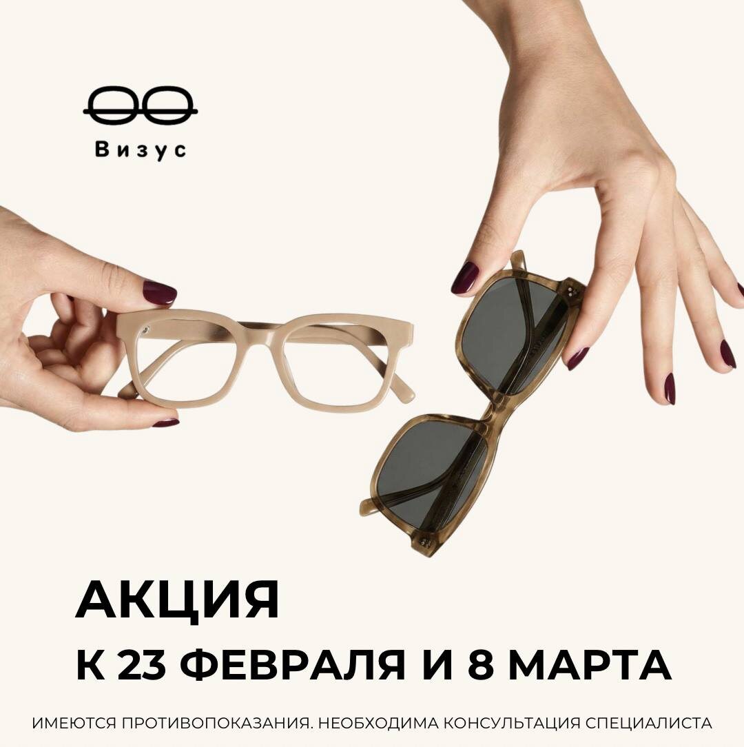 ! При покупке очков для зрения вы получаете скидку 20% на солнцезащитные очки. 🙋♂️ Выбирайте надежные очки для работы, а затем дополните свой образ солнцезащитными очками. 🙋♀️ Выбирайте идеальные очки для повседневной жизни и обновите свои солнцезащитные очки. Скидка 20% действует во всех центрах оптики Визус при одномоментной покупке очков до 10 марта. Скидка не суммируется с другими акционными предложениями. 🎁 Подарите себе и своим любимым заботу о здоровье глаз и стильный внешний вид. Все подробности акции уточняйте у оптик-консультанта в центре оптики Визус в вашем городе. 👀 Центр оптики Визус – ваш новый взгляд на мир.