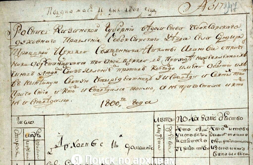 1800 год. Село Сундырь. Чебоксарский уезд. Яков Иванович Журкин.