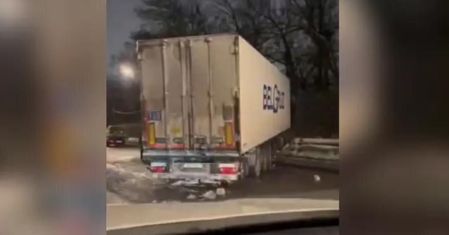 Пулковское шоссе с утра оказалось перекрыто из-за ДТП с грузовиком