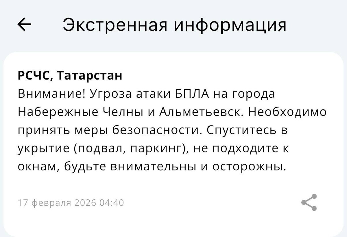 🚨 В Татарстане сняли угрозу атаки БПЛА: ночью зафиксировали пролёт дронов