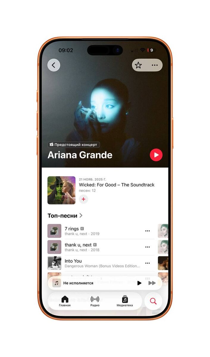 В Apple Music появились уведомления о предстоящих концертах в карточке исполнителя. Уведомление никуда не ведет. Вы видите его независимо от того в каком городе находитесь вы и в каком проходит концерт. Похожее есть в Яндекс Музыке, но там вы сразу переходите в сервис покупки билетов.