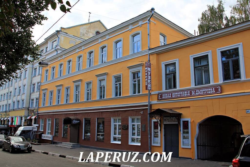 В 1828-1830-х годах был построен двухэтажный каменный дом аптекаря Карла Румеля. Предполагается, что автором проекта стал губернский архитектор Иван Ефимов, отметившийся ещё несколькими постройками в Нижнем Новгороде. В последующие годы усадьбой владели провизор Фёдор Томас, купеческая вдова Варвара Николаева, мещанин Онисифор Кузнецов, купеческая жена Авдотья Пальцева. При ней дом надстроили третьим этажом, а усадьбу дополнили двухэтажным флигелем. На его втором этаже было сделано сплошное остекление для фотоателье. Во флигеле жили и работали выдающиеся русские фотографы рубежа веков Максим Дмитриев и Андрей Карелин. Павильон Дмитриева работал свыше 40 лет в главном доме усадьбы на втором этаже. В конце 1919 года фотоателье экспроприировала советская власть, сделав его фотографией Детской трудовой коммуны. В послевоенное время бывшую усадьбу заняли фотография, швейный ателье, областной библиотечный коллектор. В 1992 году здесь открылся Русский музей фотографии, созданный при участии Н