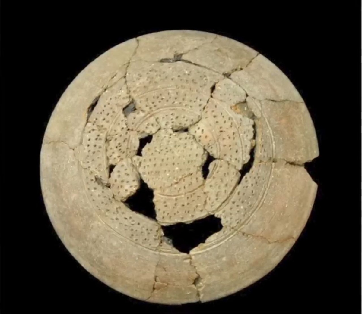 Устанавливалась сверху печи на открытое пламя. Характерна для Востока. Небольшие углубления-ямки на поверхности сделаны для того, чтобы лепёшка не прилипала к поверхности сковородки. Найдена в Израиле. Источник: лекция археолога Михаила Фрейкмана о царстве Давида https://youtu.be/iaLg_R2wWd0