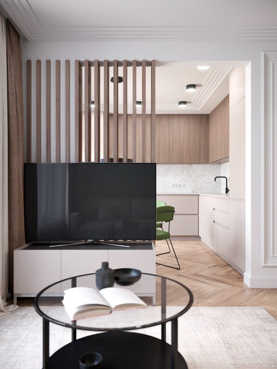 Кухня-гостиная 2026: 5 секретов зонирования, о которых молчат дизайнеры Объединение кухни и гостиной — уже не тренд, а реальность большинства современных квартир. Но как превратить большое пространство в уютное и функциональное, а не в склад мебели с запахом котлет? Главный инструмент 2026 года — цвет . Страх 1. Запахи еды по всей квартире Решение: мощная вытяжка. Ее мощность должна соответствовать объему помещения (площадь × высоту × 12). В кухне-гостиной особенно важна тихая вытяжка — до 50 дБ, чтобы не мешать просмотру ТВ . Страх 2. Рабочий беспорядок на виду Решение: продуманные системы хранения. Высокие пеналы до потолка, закрытые секции, ящики с органайзерами — всё, что скрывает лишнее . Страх 3. Шум техники мешает отдыху Решение: выбирайте тихую технику (уровень шума до 42 дБ) и располагайте шумные приборы дальше от диванной зоны . Принцип 1. Цветом, а не перегородками В 2026 году отказываются от глухих перегородок в пользу «воздушного» зонирования. Самый элегантный способ — цве
