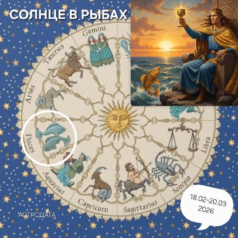 ! Наш астрологический календарь сообщает: 🗓️ 📢 18 февраля СОЛНЦЕ переходит в знак РЫБ до 20 марта! Это время, когда логика отступает, уступая место интуиции, милосердию и погружению в свой внутренний мир. Мы входим в период завершения старого годового цикла и подготовки к мощному весеннему рывку. ТЕМА 🌊☀️: "НАПРАВЛЯЕМ ВНУТРЕННЮЮ СИЛУ НА ДУХОВНОЕ ОБНОВЛЕНИЕ И ПОДГОТОВКУ ФУНДАМЕНТА БУДУЩЕГО!" 👩🏫 Наша международная школа астропсихологии АСТРОДАТА приглашает всех на мини-курс "ЧТО ПРИНЕСЁТ ЮПИТЕР в 2026". В период Солнца в Рыбах важно не просто мечтать, а точно знать, где вас ждёт реальный успех. Всего за 4 урока мы совместим теорию с практикой, чтобы вы определили свою сферу роста на весь год. 🔔🔔Начинаем 20 февраля в 19:00 по рижскому времени. Записывайтесь по ссылке: https://astrodata.pro/trsj #астрология #солнце_в_рыбах #обновление #astrodata