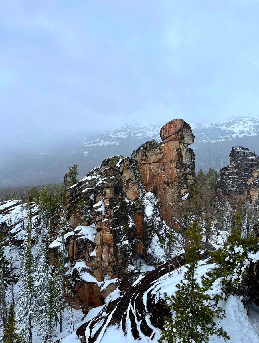 Идти стало нелегко, это точно не прогулочный вариант тропы и совсем не лесо парковая зона. По такому снегу если идти, тропы становится совсем невидно, скалы засыпаны, а в камнях видны большие расщелины. Можно также и в берлогу провалиться. Я вообще не представляю, если идти одному без гида - это ОЧЕНЬ опасно! Могу точно сказать, что маршрут не для НЕ подготовленных людей. Маленьких детей с собой лучше не брать!