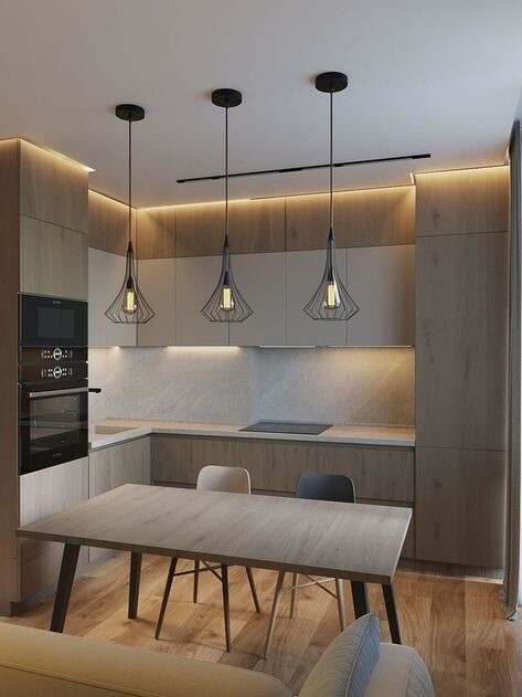 Свет решает всё: как освещение может испортить или спасти вашу кухню Вы выбрали идеальный цвет, дорогую фурнитуру, модный фартук. Но если свет неправильный — всё пропало. В 2026 году дизайнеры уделяют освещению первостепенное внимание. Рассказываем, как сделать так, чтобы кухня заиграла . Одна люстра по центру потолка — грубейшая ошибка. Правильное освещение должно быть многоуровневым . Уровень 1. Общий свет Задача: равномерно осветить всё пространство. Варианты: Уровень 2. Функциональный свет Самый важный свет на кухне. Подсветка рабочих зон: Уровень 3. Атмосферный (декоративный) свет Создает настроение: В 2026 году холодный белый свет (4000К+) окончательно уходит из жилых интерьеров. Он уместен только в ванных и прихожих . Правильная температура для кухни: Почему это важно: теплый свет делает цвета «вкуснее», холодный искажает и «стерилизует» пространство. Трековые системы (шинопроводы) Главный хит года. Это рельсы на потолке, по которым можно двигать светильники и менять направление