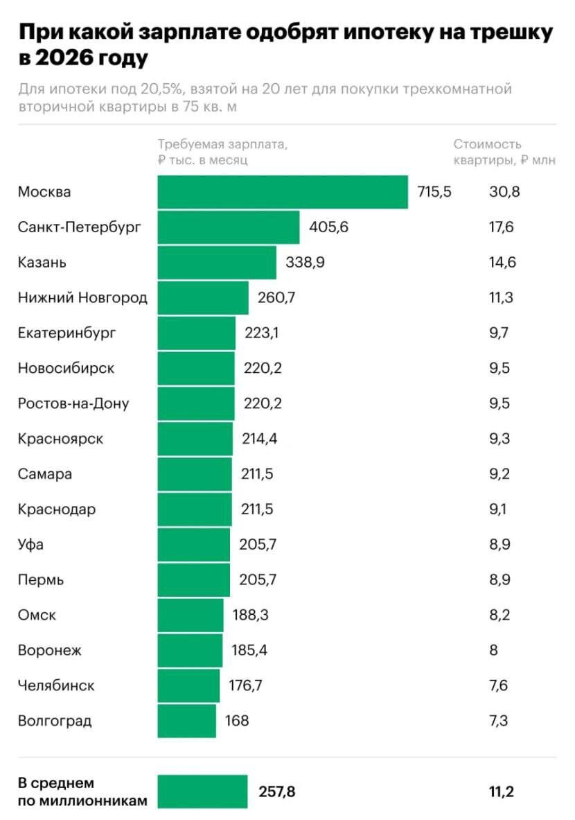 Привет, друзья! Сегодня мы поговорим о том, сколько нужно зарабатывать, чтобы банк дал добро на кредит на квартиру в Москве. Согласно подсчётам РБК, россиянину необходимо иметь доход не менее 700 тысяч рублей в месяц, чтобы получить одобрение на кредит для покупки трёхкомнатной квартиры в столице. Средняя стоимость такой квартиры составляет 30,8 миллиона рублей. Давайте разберёмся, почему это важная информация и что она значит для читателя. Во-первых, это показывает, насколько высоки требования банков к заёмщикам при выдаче кредитов на покупку недвижимости. Во-вторых, это подчёркивает, что покупка квартиры в Москве остаётся недоступной для многих россиян, даже при наличии официального трудоустройства и стабильного дохода. Интересно, что эти цифры могут варьироваться в зависимости от кредитной политики конкретного банка и других факторов. Однако общая тенденция остаётся неизменной: покупка квартиры в Москве — это серьёзное испытание для многих семей. А что вы думаете о такой ситуации? К
