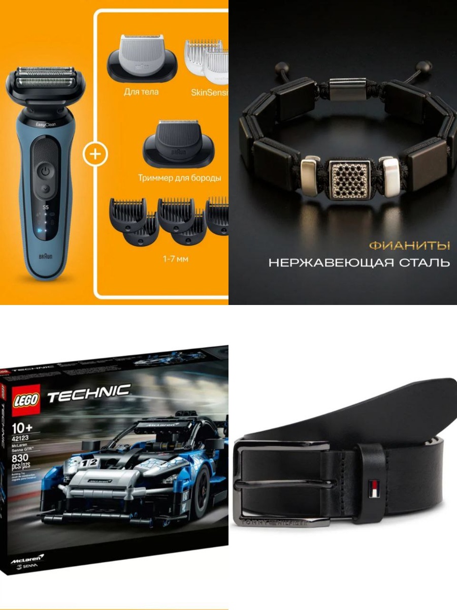 : Электробритва Браслет из натуральных камней Конструктор Lego Ремень Сертификат на проживание в отеле на двоих Умная колонка Беспроводная зарядная станция Aroma box Сертификат в магазин Lime Ваш стилист Ольга Минакова