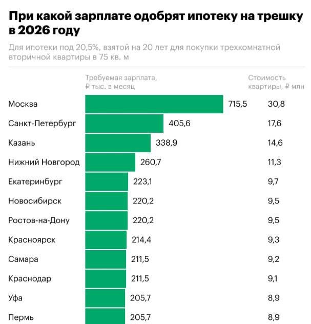 🤑 700 тыс рублей нужно зарабатывать, чтобы банк одобрил ипотеку на трешку в Москве