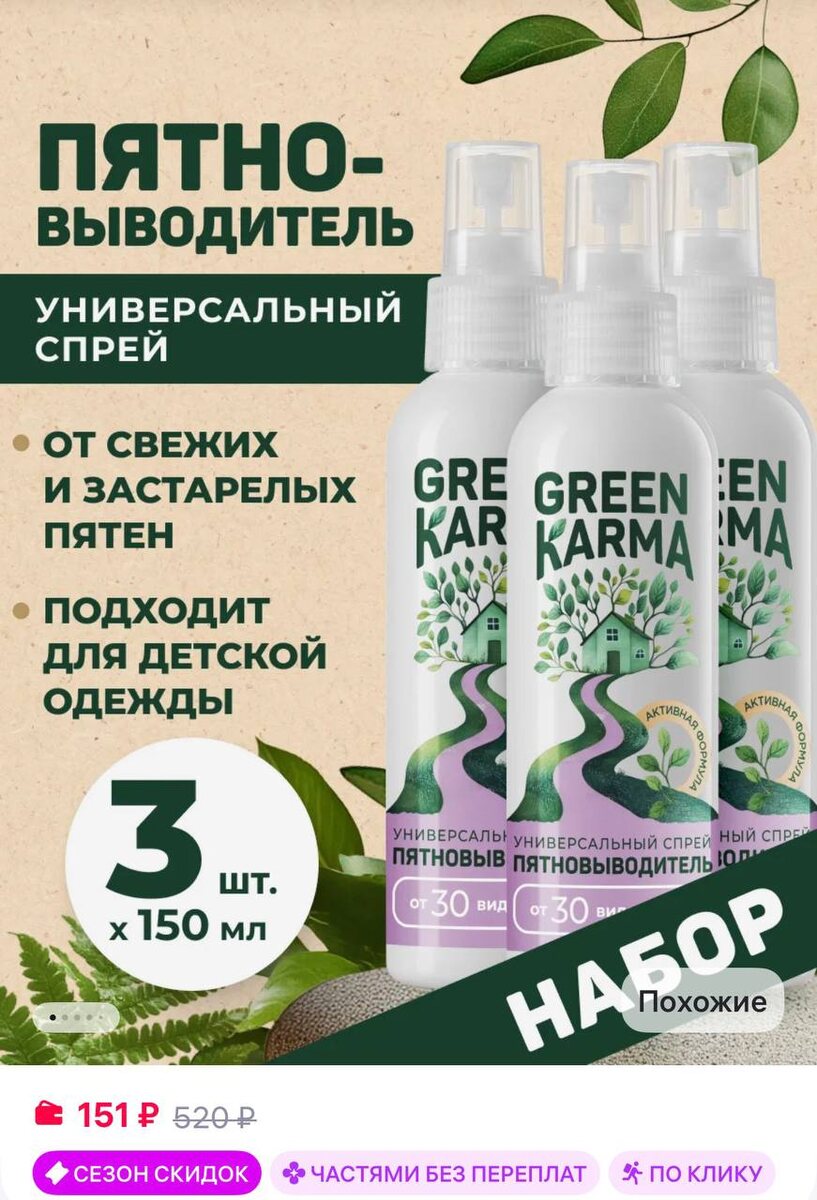 😀😀😀Green Karma Набор универсальный спрей-пятновыводитель 3 шт