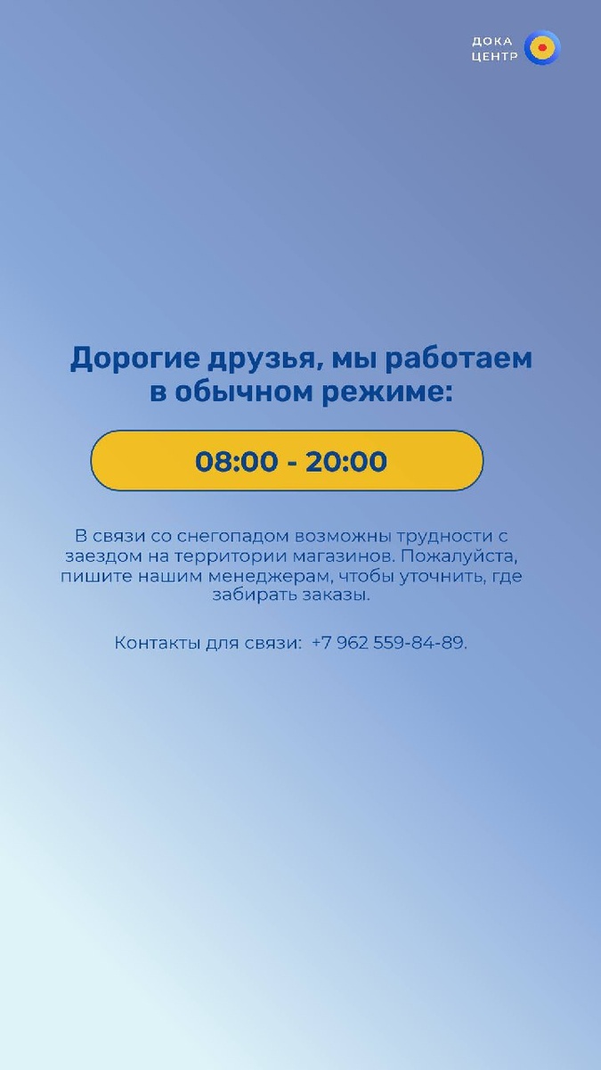 ! В связи со снегопадом возможны трудности с заездом на территории магазинов. Пожалуйста, пишите нашим менеджерам, чтобы уточнить, где забирать заказы. Быстро связаться с нами: @docaadmin Позвонить: +7 962 559-84-89.