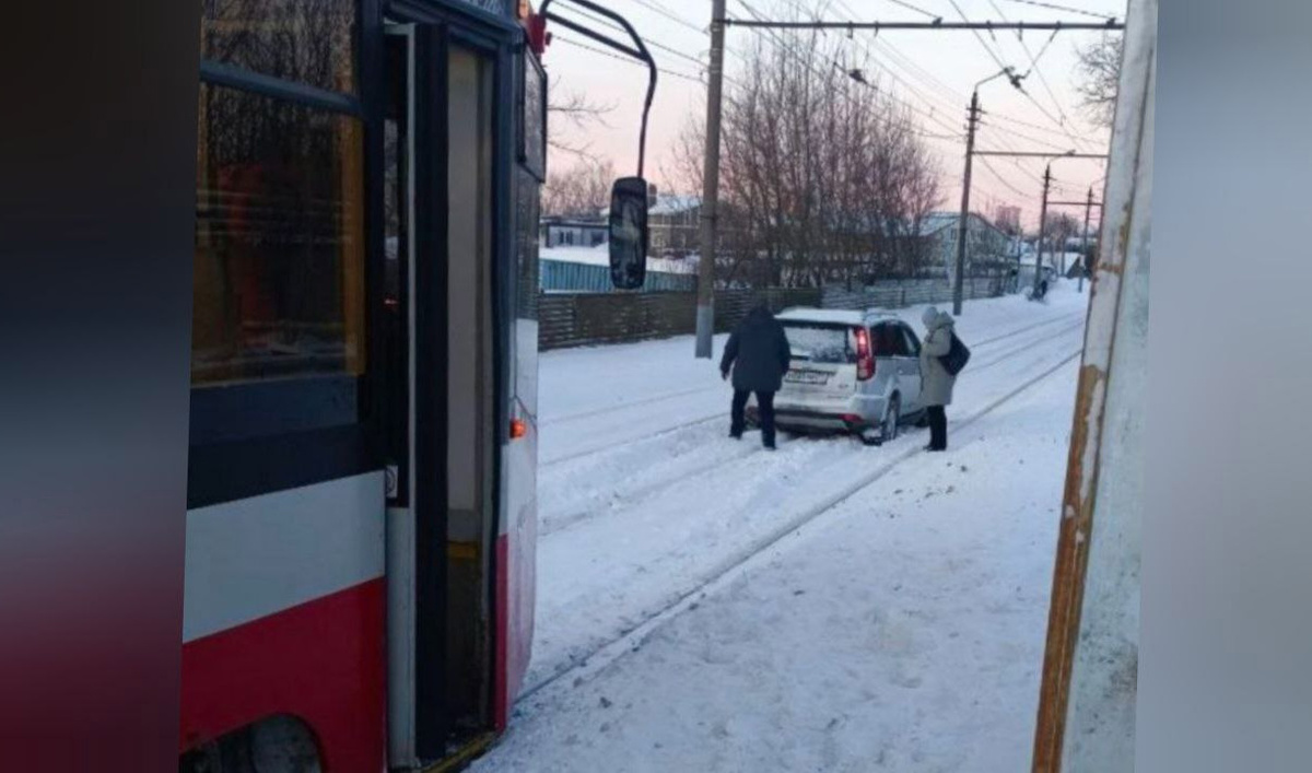 В Мясново очередной водитель пытался покорить трамвайные пути